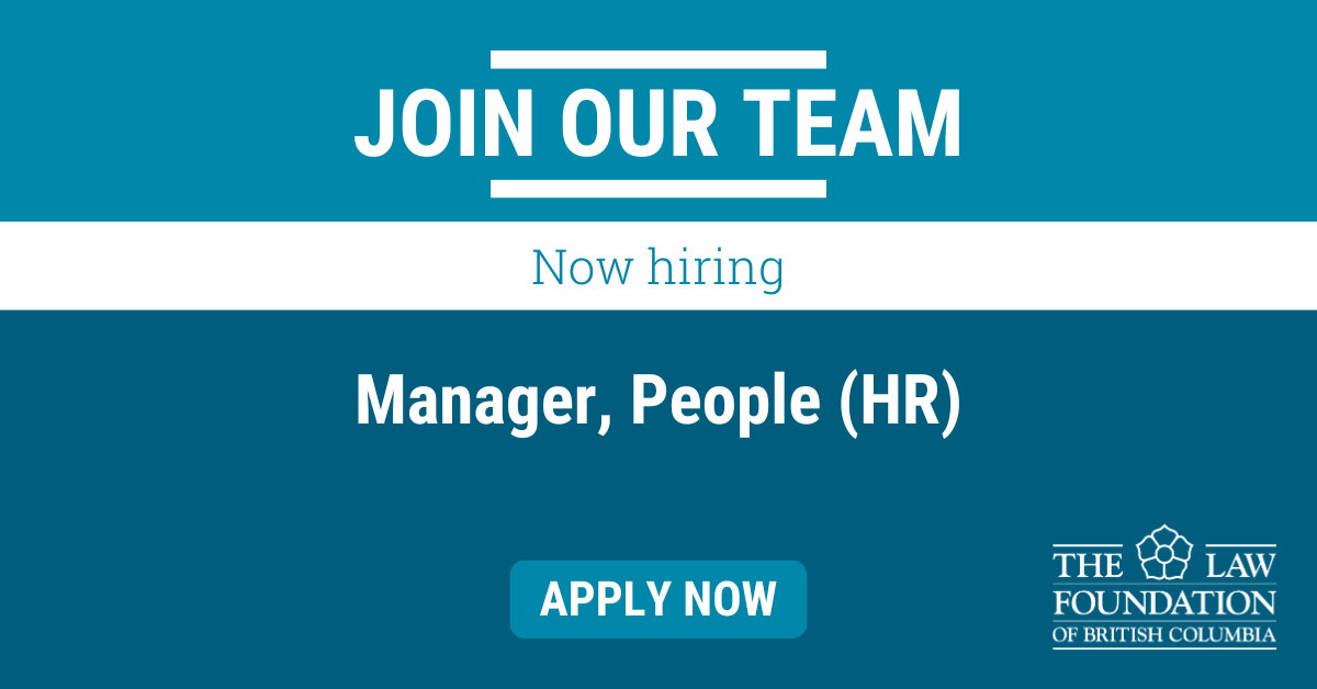 For more information on this position, please see the full posting on the Foundation’s hiring portal: https://lawfoundationbc.bamboohr.com/careers/63